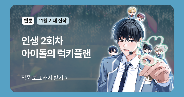- 웹소설 <인생 2회차 아이돌의 럭키플랜> 유료로 1화 감상하면 최대 1,000캐시뽑기권이 즉시 지급됩니다.