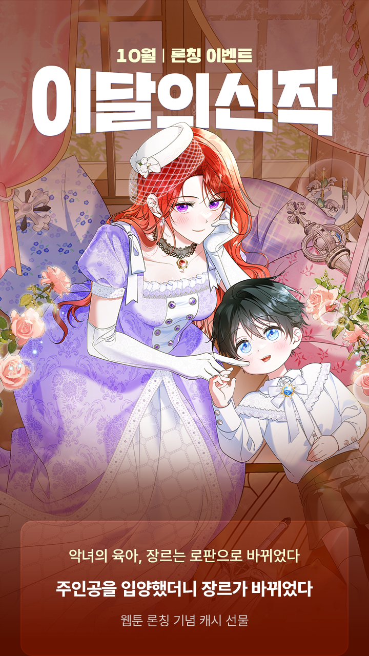 악녀의 육아, 장르는 로판으로 바뀌었다. <주인공을 입양했더니 장르가 바뀌었다> 웹툰 론칭 기념 캐시 선물