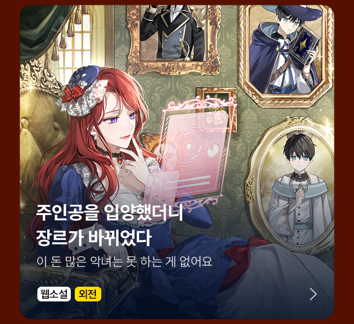 웹툰 <주인공을 입양했더니 장르가 바뀌었다> 유료로 3화 감상하면 최대 1,000캐시 뽑기권이 즉시 지급됩니다.